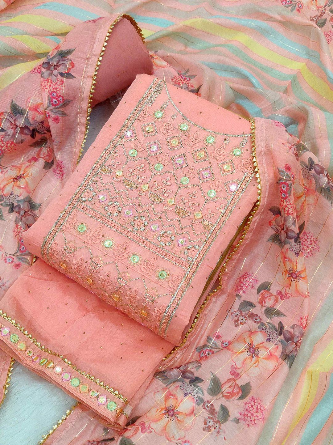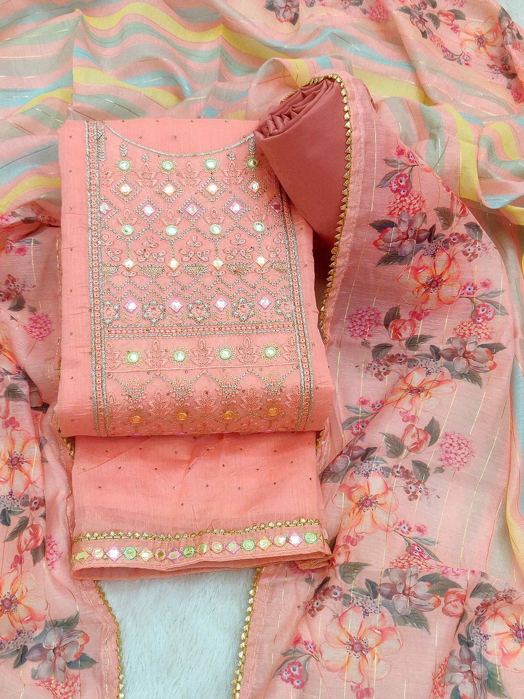 TAVAS presents this elegant Pink Dress Material crafted for Women. Made using premium Not Available, this outfit features a refined Not Available silhouette, a stylish Not Available neckline and Not Available. The Not Available hemline and Not Available length complete the look. Perfect for Festive wear.
