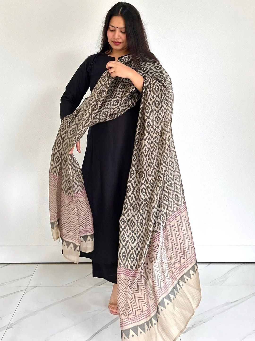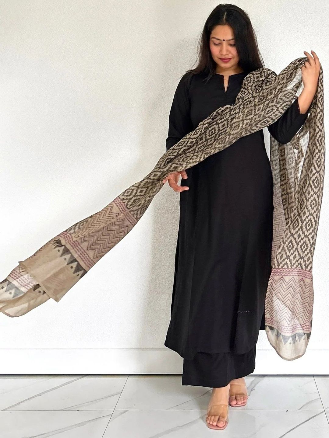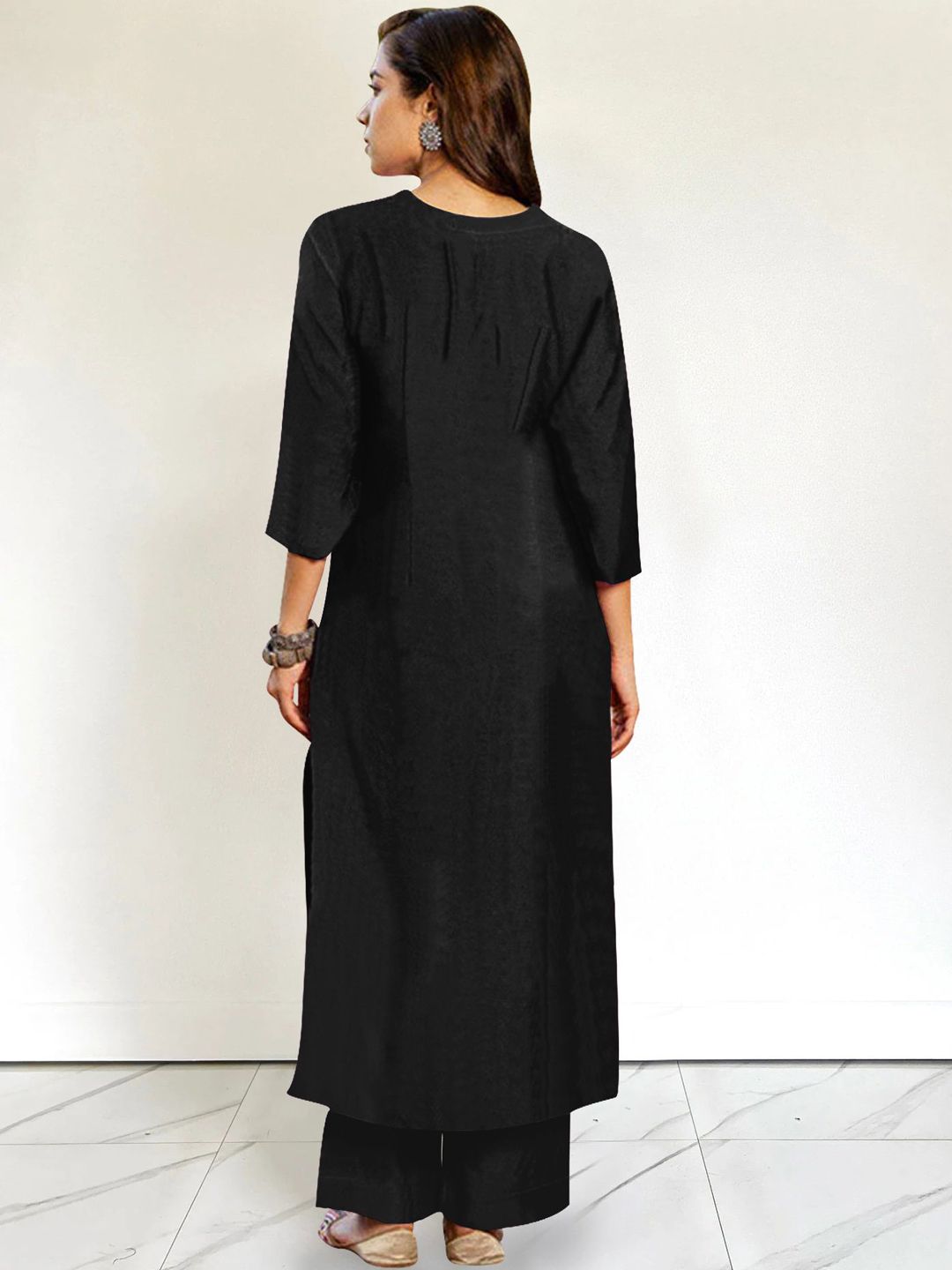 GoSriKi presents this elegant Black Kurta Sets crafted for Women. Made using premium Not Available, this outfit features a refined Not Available silhouette, a stylish Round Neck neckline and Three-Quarter Sleeves. The Not Available hemline and Not Available length complete the look. Perfect for Daily wear.