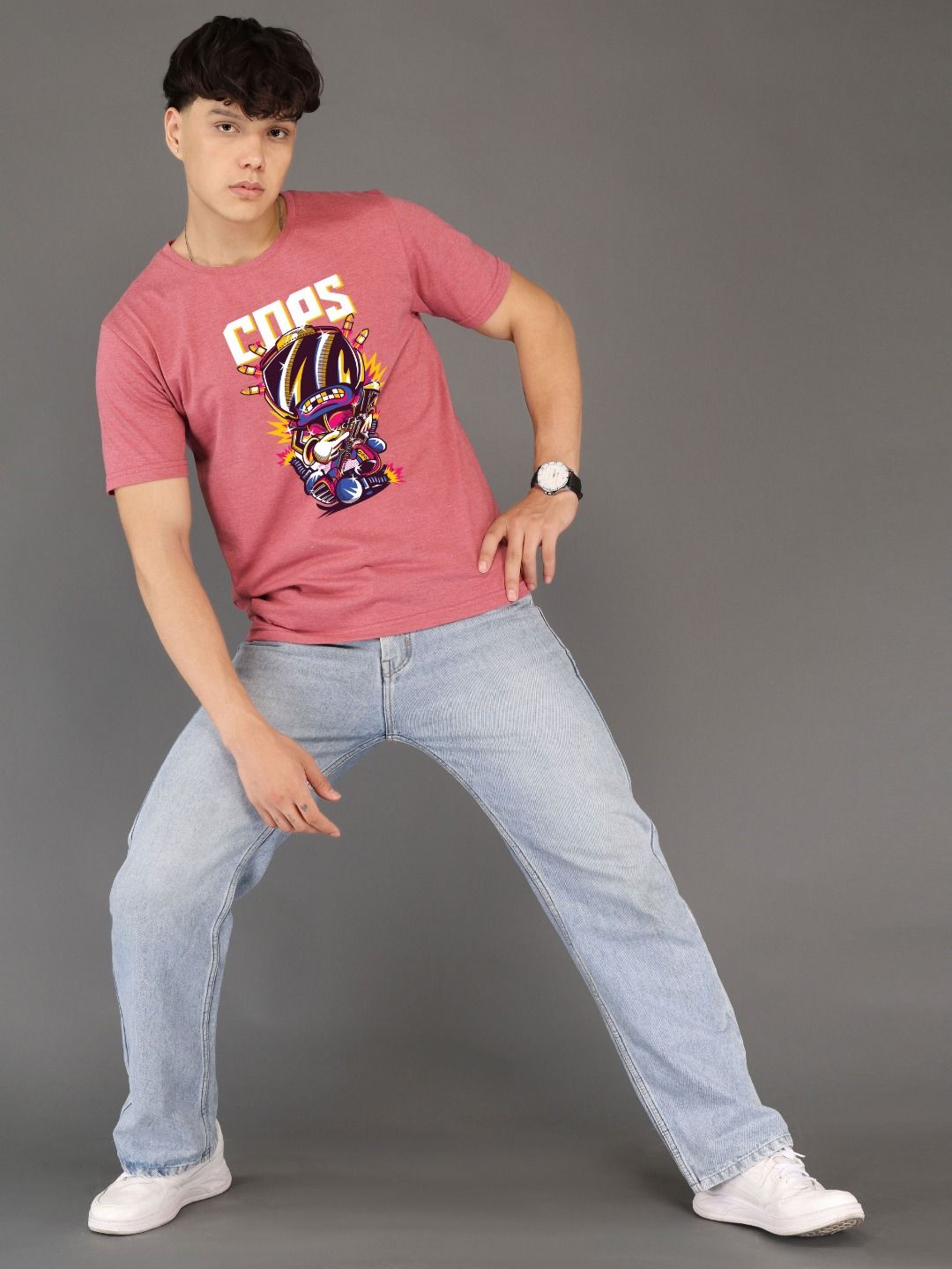 BRAWNY BATTLER presents this elegant Pink Tshirts crafted for Men. Made using premium Cotton, this outfit features a refined Not Available silhouette, a stylish Round Neck neckline and Short Sleeves. The Not Available hemline and Regular length complete the look. Perfect for Casual wear.