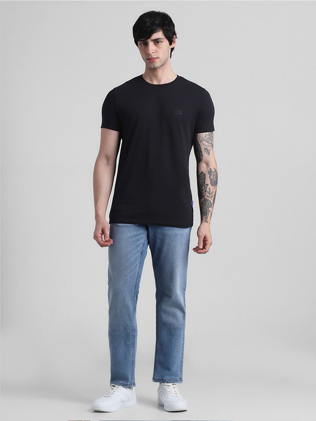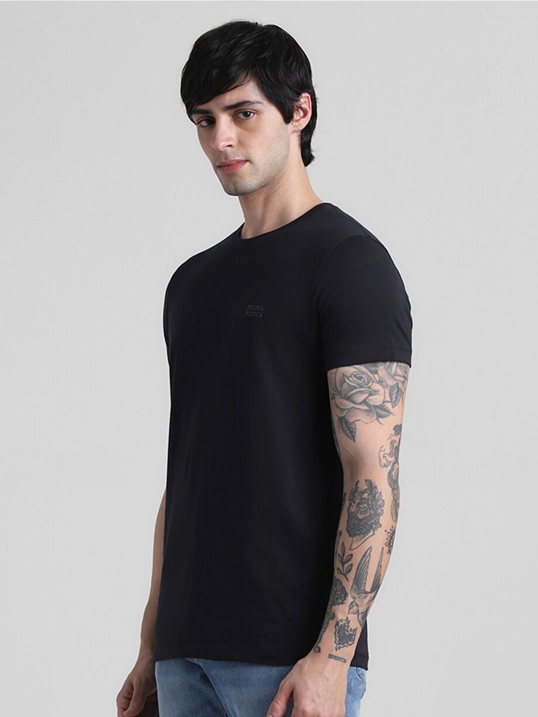 Jack & Jones presents this elegant Black Tshirts crafted for Men. Made using premium Pure Cotton, this outfit features a refined Not Available silhouette, a stylish Round Neck neckline and Short Sleeves. The Not Available hemline and Regular length complete the look. Perfect for Casual wear.