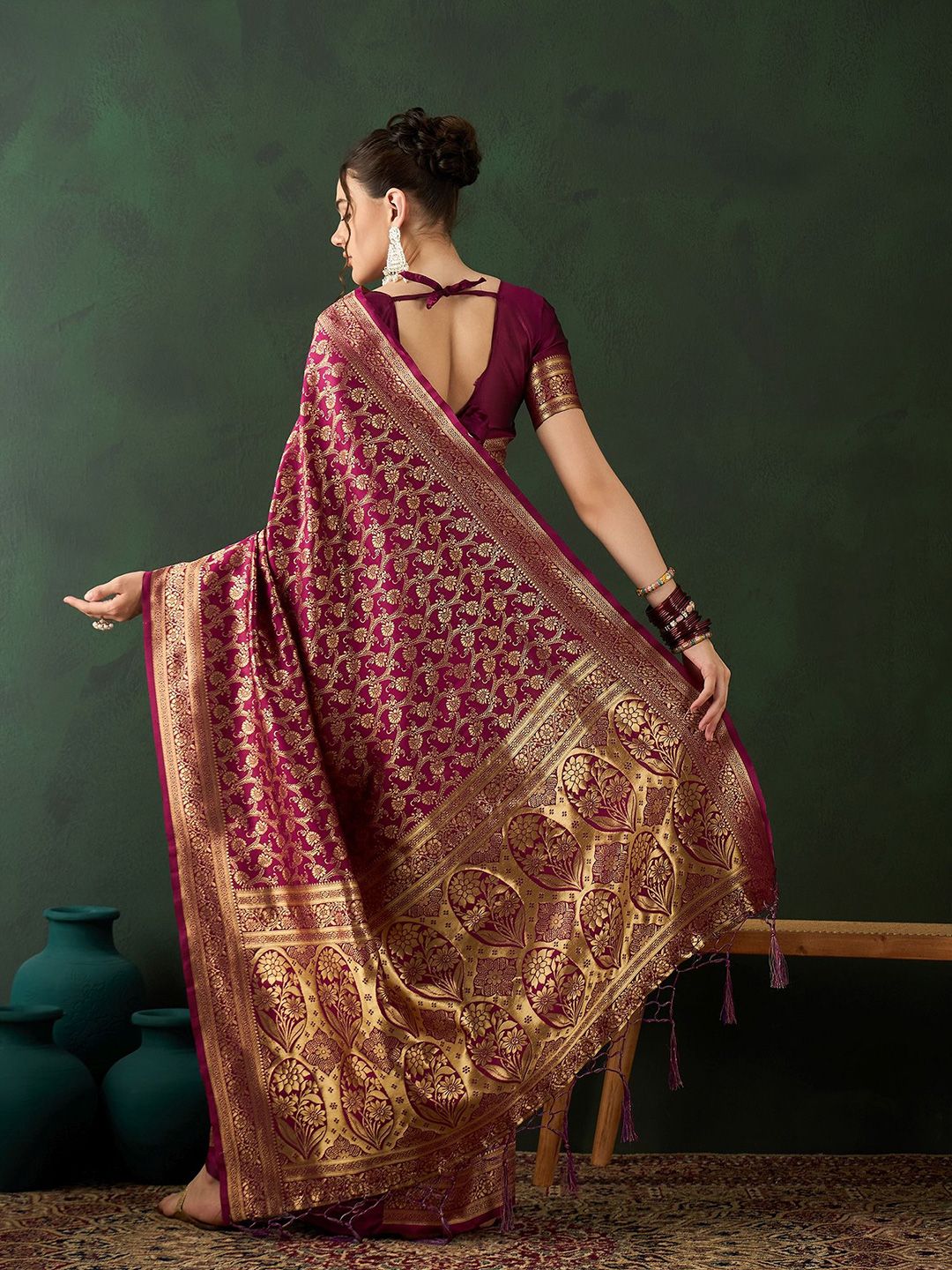 Sangria presents this elegant Burgundy Sarees crafted for Women. Made using premium Not Available, this outfit features a refined Not Available silhouette, a stylish Not Available neckline and Not Available. The Not Available hemline and Not Available length complete the look. Perfect for Festive wear.