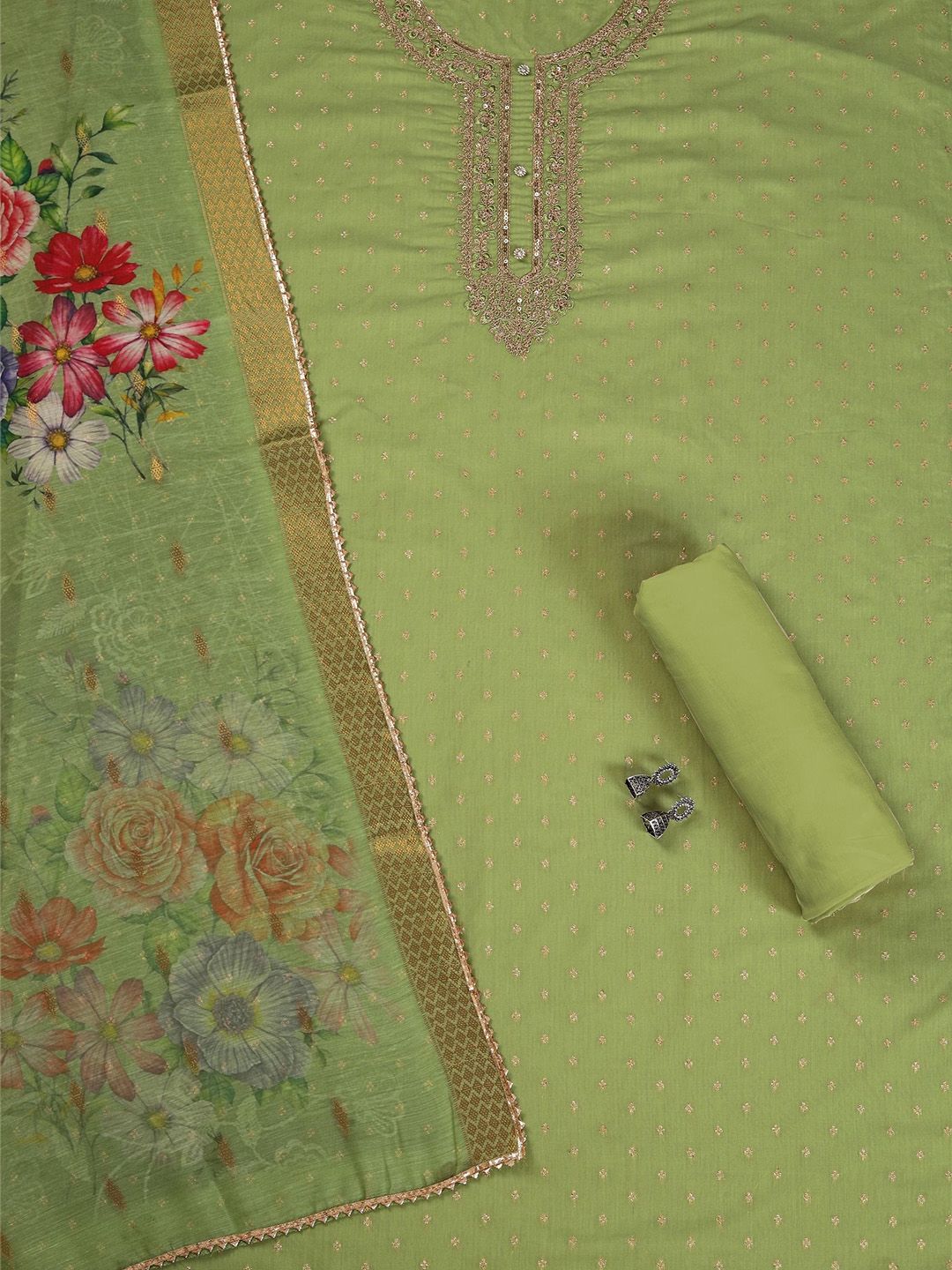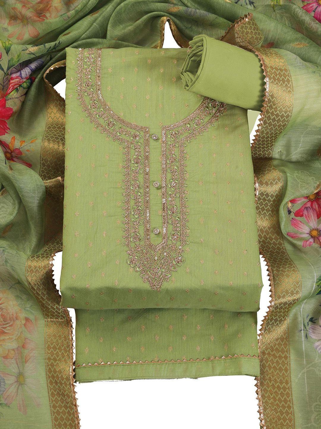 TAVAS presents this elegant Green Dress Material crafted for Women. Made using premium Not Available, this outfit features a refined Not Available silhouette, a stylish Not Available neckline and Not Available. The Not Available hemline and Not Available length complete the look. Perfect for Festive wear.