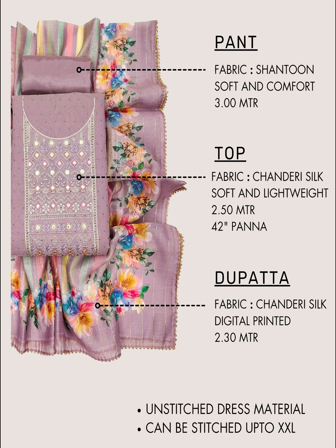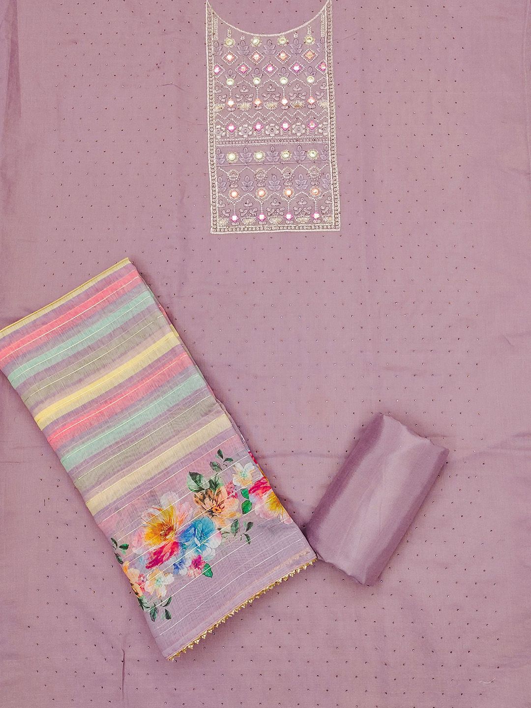 TAVAS presents this elegant Lavender Dress Material crafted for Women. Made using premium Not Available, this outfit features a refined Not Available silhouette, a stylish Not Available neckline and Not Available. The Not Available hemline and Not Available length complete the look. Perfect for Festive wear.