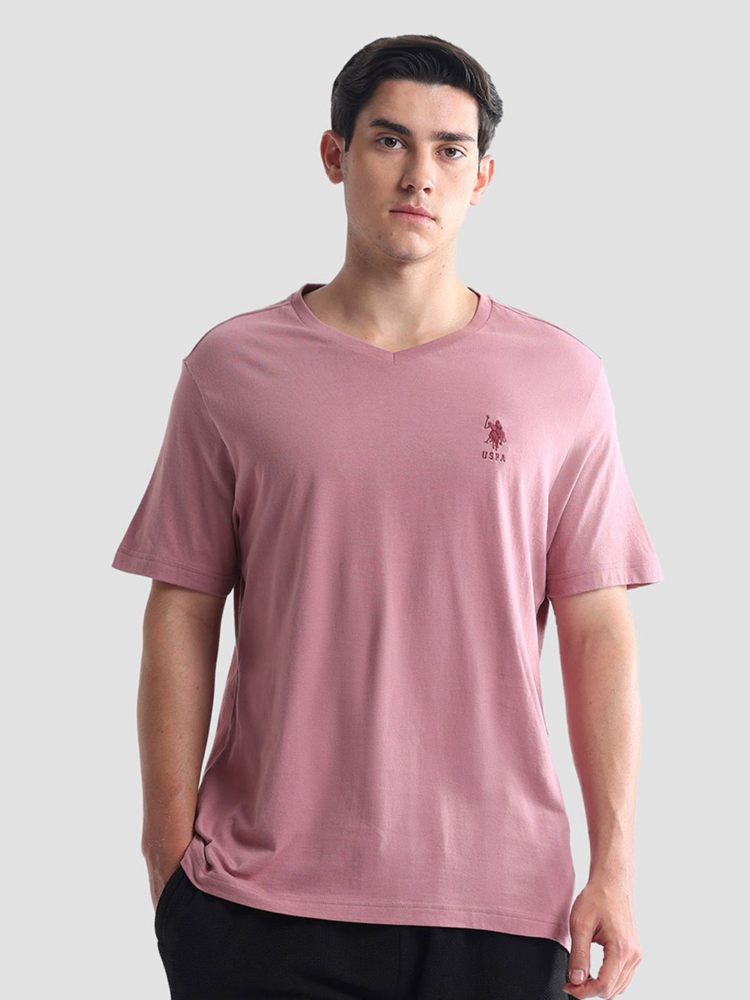 U.S. Polo Assn. presents this elegant Pink Lounge Tshirts crafted for Men. Made using premium Cotton, this outfit features a refined Not Available silhouette, a stylish V-Neck neckline and Short Sleeves. The Not Available hemline and Not Available length complete the look. Perfect for Not Available wear.